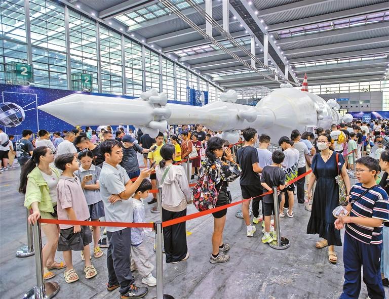 Visitors line up beside a 1:1 model of the 58.34-meter-tall Long March 2F carrier rocket on display at the Shenzhen Aerospace, Aviation, and National Defense Technology Exhibition, which runs through Aug. 17 at the Shenzhen Convention and Exhibition Center in Futian District. The exhibition features three main zones — defense and military, aerospace technology, and outdoor heavy equipment — that highlight China’s achievements in aerospace and national defense. Metro: Lines 1 or 4 to Convention and Exhibition Center Station (會展中心站), Exit D. |
