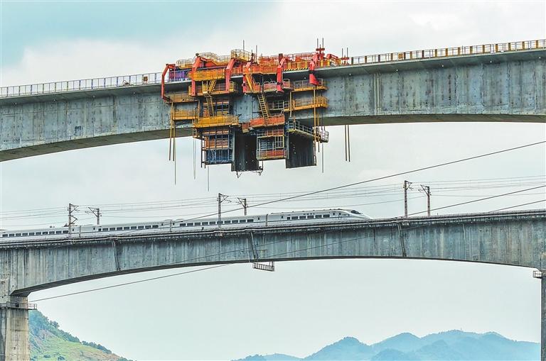 Built by China Railway Construction Bridge Engineering Bureau for the new Chongqing–Wanzhou line (Yuwan HSR), the bridge has successfully closed its main span, paving the way for the line to open on schedule. Located in Fuling District, Chongqing, the Caijiagou bridge spans a tributary of the Yangtze River and is one of the project’s most challenging structures, with a total span of 584 meters. The Yuwan HSR is part of China’s “eight vertical and eight horizontal” high?speed rail network; the main line is 251 kilometers long and designed for speeds of up to 350 km/h.