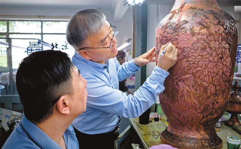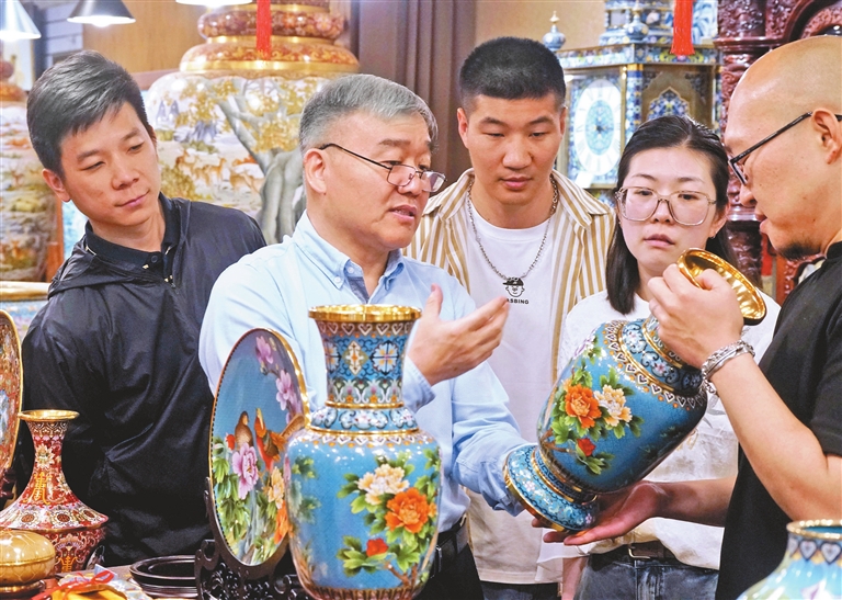 BENT over a luminous vase of pink peonies, a young craftsman guided his enameling tool in patient, practiced circles at a factory in central Beijing, breathing new life into China's cloisonné tradition. At the Beijing Enamel Factory, cloisonné, which was more broadly used in jewelry and metalware in the ancient royal court, now quietly evolves through the hands of young craftsmen. “Cloisonné has always been about adaptation,” said Zhong Liansheng, chief craft artist at the factory. Born in 1962, Zhong has watched this transformation unfold before his eyes. Cloisonné stands out as a vivid fusion of timeless artistry and contemporary appeal, according to the master. With ingenious designs, superb craftsmanship, and auspicious symbolism, cloisonné artworks bridge traditional and modern aesthetics, gaining popularity among consumers both at home and abroad. In recent years, cloisonné pieces have often been presented by China as national gifts at major diplomatic events. This growing appeal also reflects a broader revival of traditional crafts across China, backed by government support and a new generation eager to embrace their cultural heritage. Craftsmanship meets modernity “At the core of cloisonné's mystique is its exquisite delicacy, achieved through countless steps that demand absolute precision at every turn,” Zhong said, adding that each object — be it a gleaming dome or a small jewelry box — undergoes multiple laborious steps. Cloisonné begins with shaping a copper body, then bending fine wires into intricate patterns affixed to the surface. The piece is fired to fuse the filigree, then filled with enamel made from mineral powders. After repeated firing, polishing and gilding, the result is a luminous work of precision and color. “This work is truly the perfect embodiment of craftsmanship,” Zhong said. Yet for him, honoring the past is not enough. “Don't just copy the old styles,” he said, adding that this ancient arts will only endure if it finds a place in people's everyday lives. In recent years, the Beijing Enamel Factory has applied cloisonné techniques to architectural décor, from upscale interior design elements to public art installations. “We have to create masterpieces that carry our era's aesthetics,” Zhong said, highlighting the importance of keeping cloisonné alive as a dynamic art form rather than a static relic. His philosophy resonates with a broader shift, as across China, inheritors of intangible cultural heritage are blending tradition with modernity. One notable example is cloisonné artisan Xiong Songtao in Beijing, whose glistening enamel pieces earned his workshop a global partnership with the Spanish fashion brand LOEWE. Similar partnerships have emerged in other crafts. The Italian brand Fendi collaborated with artisans from China's Yi ethnic group to create a Baguette bag featuring traditional Yi embroidery and silverwork. French luxury brand Dior incorporated “Ronghua,” a velvet flower-making craft that has been practiced since the Tang Dynasty (618-907), into its men's couture knitwear. Among the driving forces of the revival of traditional crafts are young Chinese consumers. Gen-Z in particular has developed a proud appetite for homegrown designs and motifs, fueling the “Guochao” or “China-chic” wave that values authenticity and heritage. The surging sales of cultural-heritage-themed products reflect this trend. According to data from China's leading e-commerce platforms, Taobao and Tmall, the annual transaction volume of intangible cultural heritage-related products surpassed the 100-billion-yuan mark in 2023, reaching 107.32 billion yuan (US$15 billion), a year-on-year increase of 37.7%. Policy-driven preservation Behind cloisonné's comeback is not only the passion of masters like Zhong, but a concerted push by the Chinese government to preserve and revitalize traditional crafts. Cloisonné, widely produced during the Ming (1368-1644) and Qing (1644-1911) dynasties, was listed as a national intangible culture heritage in 2006. In 2017, the central government issued a set of guidelines on advancing the inheritance and development of fine traditional Chinese culture, emphasizing efforts to preserve cultural heritage, nourish artistic creation, integrate traditional culture into daily life and industry, and promote mutual learning between Chinese civilization and others. The impact of such policies is tangible. Across the country, over 11,000 intangible cultural heritage workshops have been established, preserving traditional crafts while also creating jobs in local communities. As of March this year, the number of national-level intangible cultural heritage inheritors had grown to nearly 4,000. Zhong noted that each year, various government agencies channel resources into keeping cloisonné alive. “The Beijing government supports us in R&D projects, including developing new enamel glazes,” Zhong explained, adding that the Beijing Municipal Science and Technology Commission has sponsored the company's research into lead-free enamel, a safer alternative to traditional leaded glass glaze. Education plays an equally vital role. The Beijing Enamel Factory has introduced cloisonné-making courses in several primary and middle schools as an extracurricular program to spark interest among youth. “Of course, not everyone will become a cloisonné artisan,” Zhong said with a smile. “But whatever they do in life, they can help pass on the flame.” (Xinhua) |